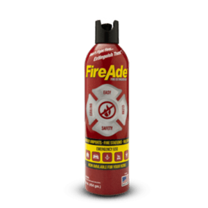 FireAde® is a 1:B rated personal fire extinguisher designed for easy application and extinguishment of fire outdoors and around the house using our signature FireAde® firefighting foam. No mess, non-corrosive, water-based formula leaves no residue and wipes up easily. Effective on Class A and Class B fires (97% of all fires).